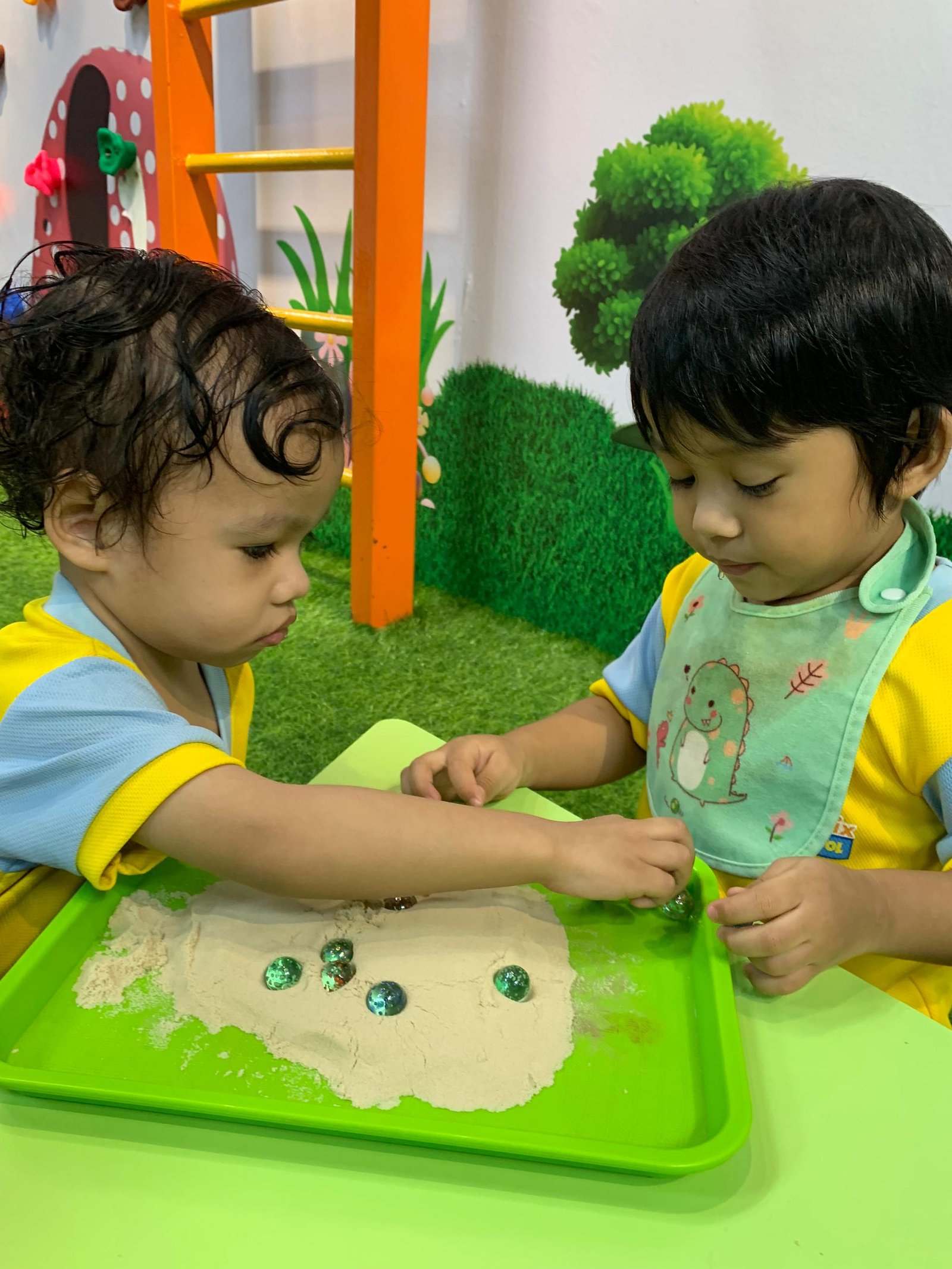 Utilizing the ‘Magical Art Box’, children participate in customized projects throughout the year that stimulate brain development and creativity, fostering problem-solving abilities and fine motor skills